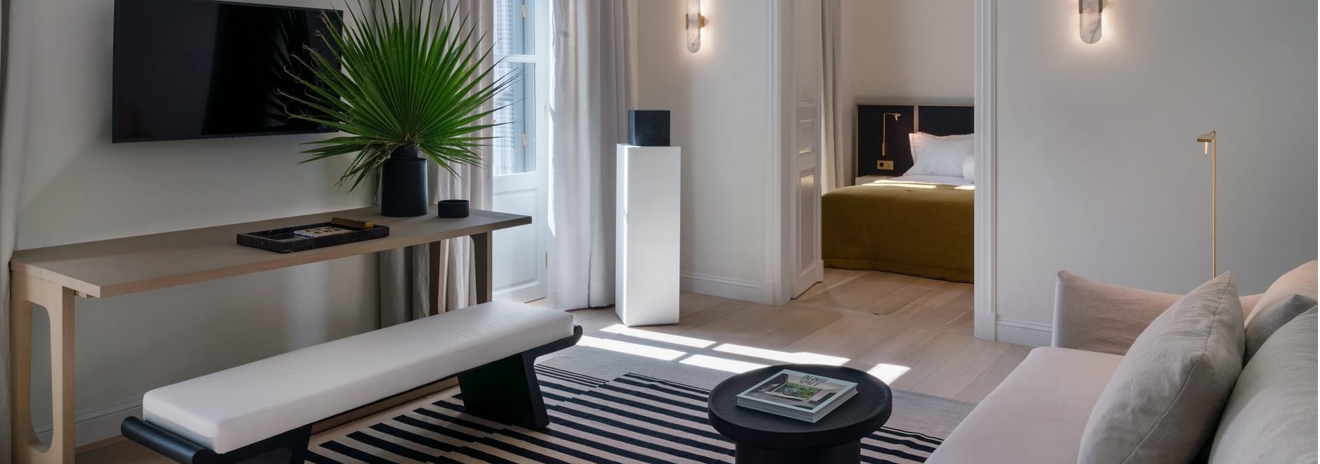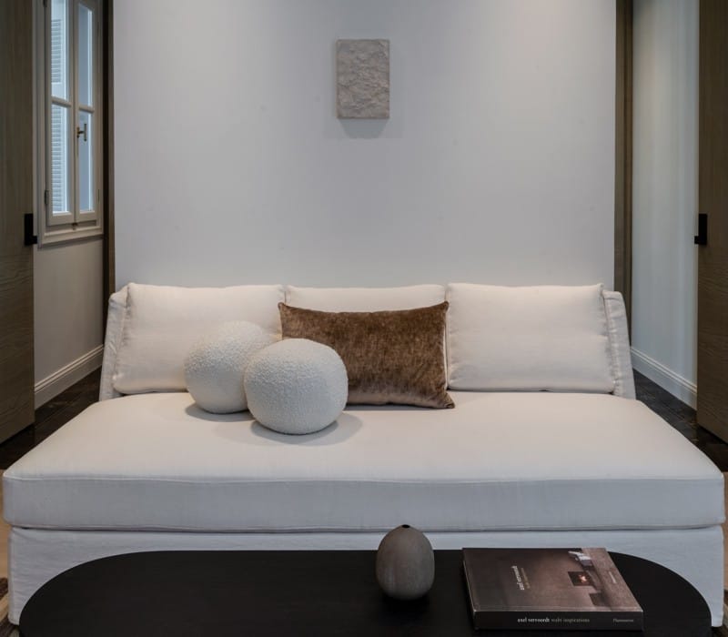Kinglin luxury apartments take the notion of high-end accommodation to a whole other level. Designated as preserved by the ministry of culture, the building where the apartments reside used to house a family of diplomats in the courtyard of the Royal family in the beginning of the 20th century. In 2020 it was totally re-constructed maintaining only its preserved façade. The well-known Greek interior designer Vangelis Bonios of Studio Bonarchi curated the interior layout and decoration of the house inspired by the Greek light and the white color of Greek marbles, creating a sense of lightness like floating in a dream.
